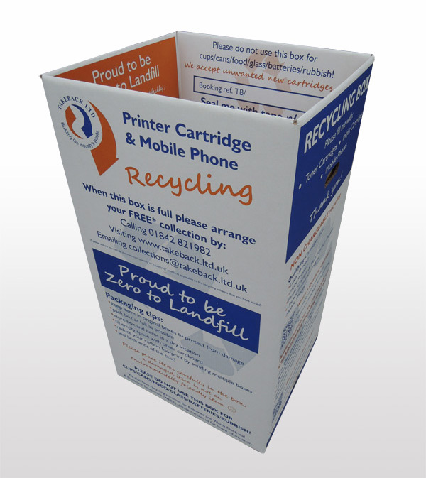 We can supply large collection sacks or boxes to put your cartridges in if required, although it is more environmentally friendly to use the original packaging and therefore reuse and recycle as much as possible.